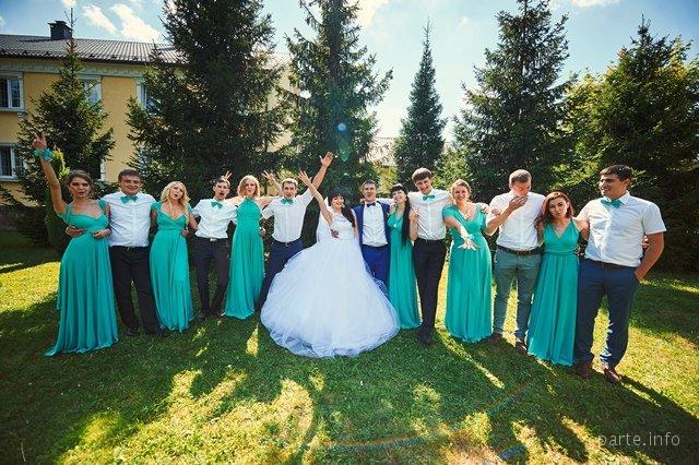 Одинаковые наряды в цвет свадьбы превосходно дополняют общий стиль свадьбы и выглядят стильно.